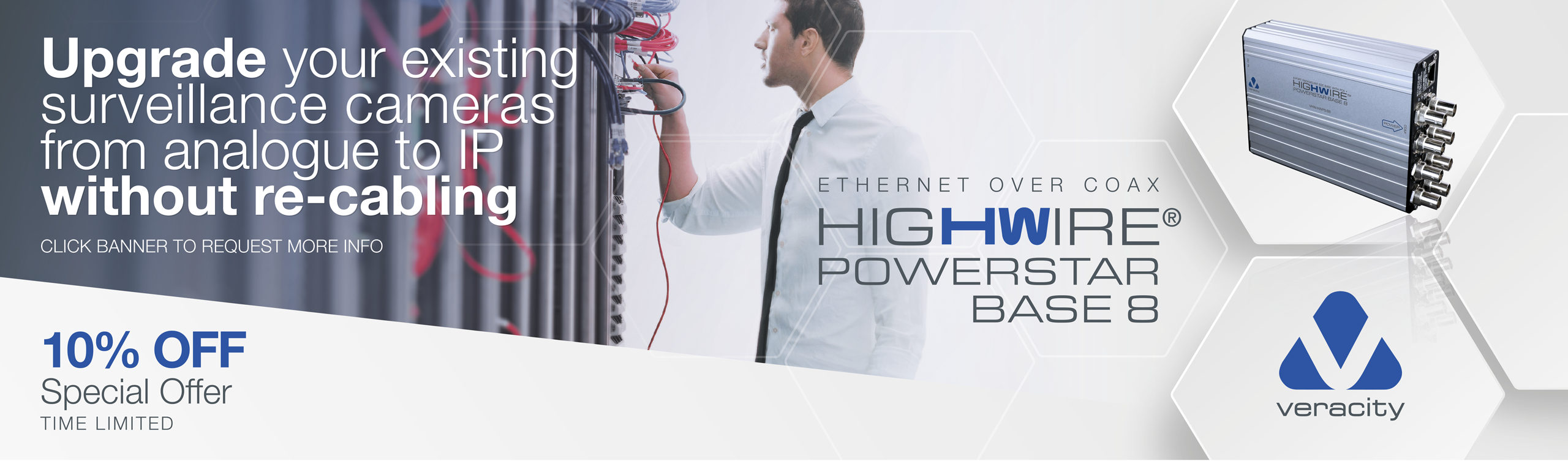 Veracity’s simple to install and proven HIGHWIRE Powerstar products deliver high-speed Ethernet and reliable power delivery at long range over legacy coaxial cable. DVS offer Veracity’s full range of POE-over-Coax adaptors for single, dual, four, eight and multi-channel applications.