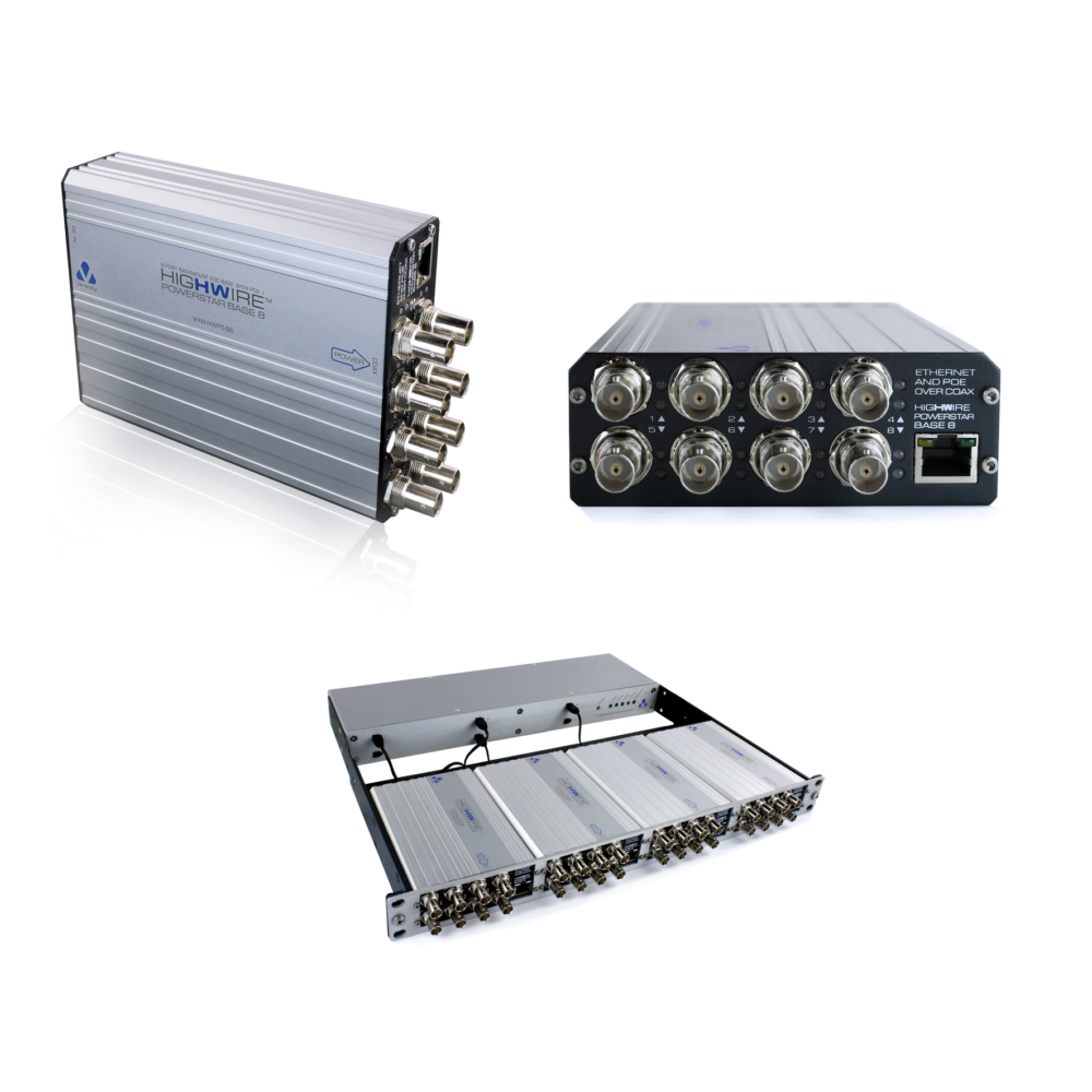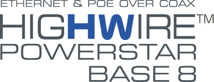 Specifically designed as an easy to install and cost-effective solution to provide Ethernet and POE to multiple IP cameras and devices over existing coax, the HIGHWIRE Powerstar Base 8 (product code: VHW-HWPS-B8) integrates eight HIGHWIRE channels and a gigabit switch into a single unit and enables rack-mounting of up to four units in 1U, giving 32 channels in a single 1U, with space for an optional 1U power supply and up to 25W POE per channel.